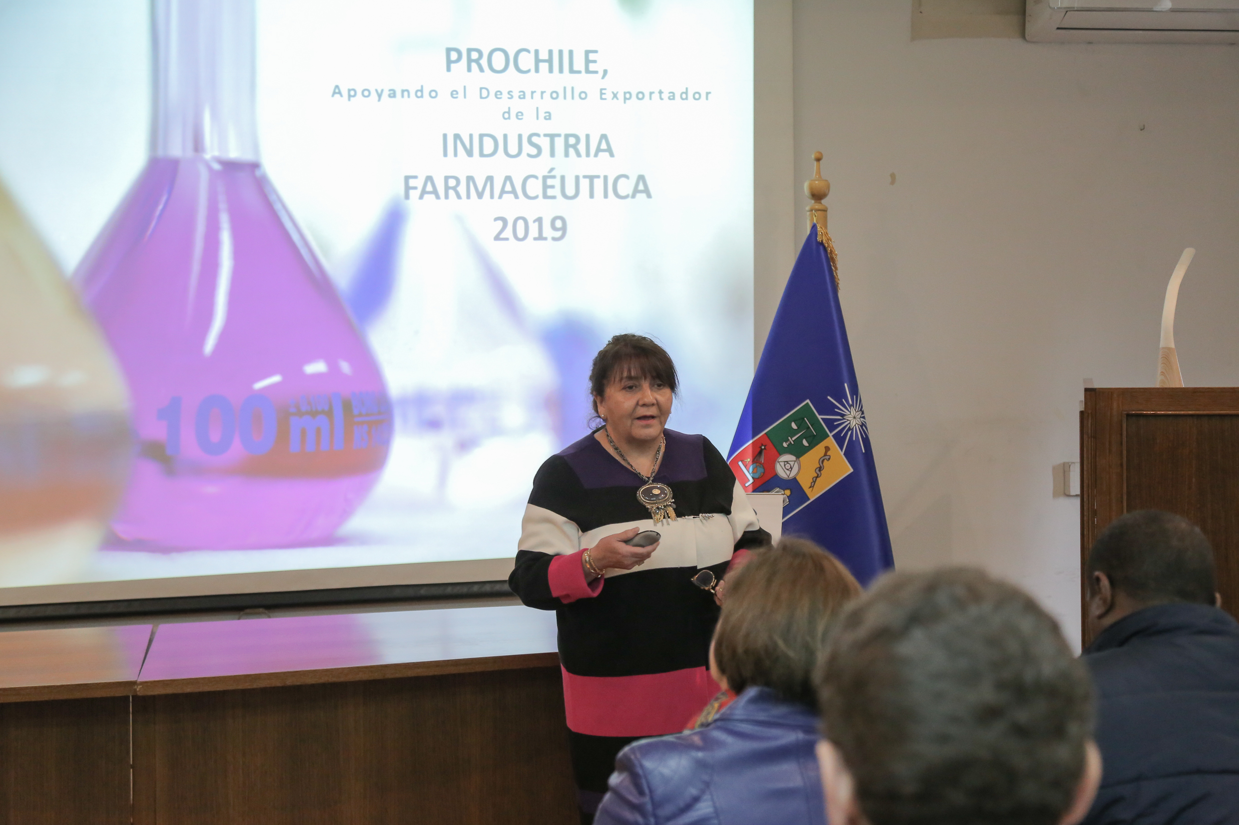 El seminario abordó además la internacionalización de la industria farmacéutica, con la intervención de Marcela Moya, de Prochile, y la regulación chilena de los alimentos con presentación farmacéutica, a cargo de Purificación Pérez, miembro del directorio de la Sociedad Chilena de Microbiología e Higiene de Alimentos. Asimismo, el profesor Felipe Oyarzún realizó una presentación sobre las nuevas nanoestructuras, metodologías verdes y desarrollo de formulaciones con potencial comercial.