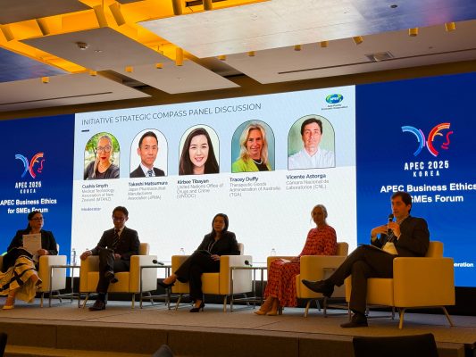 Con la presencia de representantes del ecosistema de salud chileno y del presidente del Cámara Nacional de Laboratorios Farmacéuticos, Vicente Astorga, y cerca de 100 delegados de distintos países, se realizó la cumbre APEC Business Ethics for SME’s Forum en Seúl, Corea, el 8 y 9 de septiembre.